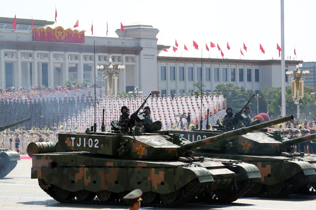 99式主战坦克及其后续型号自1999年以来,在历次阅兵上均为装甲方阵第一方队,体现其重要地位。其改进型99A坦克在2014年首次公开亮相,是现役解放军主战坦克,重58公吨,长度7.6米,宽3.5米,高2.37米,载员3人,作战范围600-800公里,时速80公里。