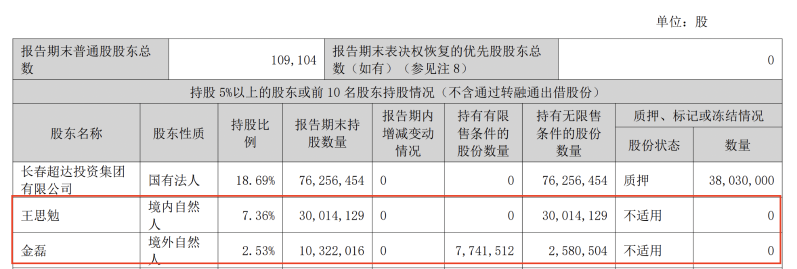截至2025年6月末,王思勉仍是长春高新第二大股东,持股7.36%,金磊持股2.53%。