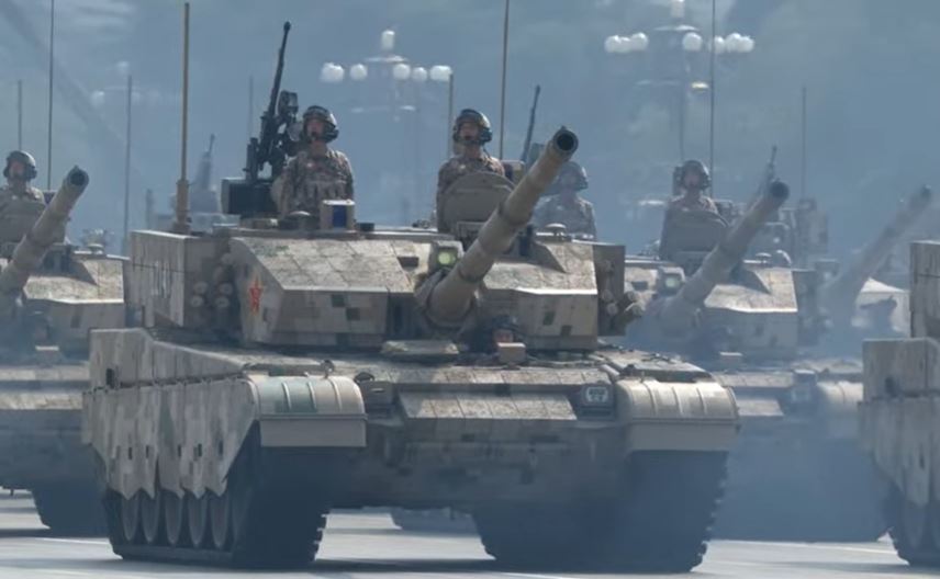 ▲新一代装甲装备99B、100坦克亮相。央视截图