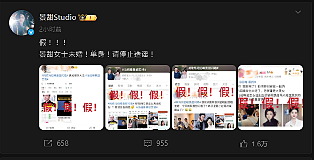 ▲景甜工作室回应。 (图/翻摄自景甜Studio微博)
