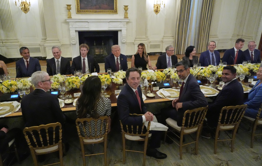 ▲特朗普在白宫宴请多名科技界领袖。美联社