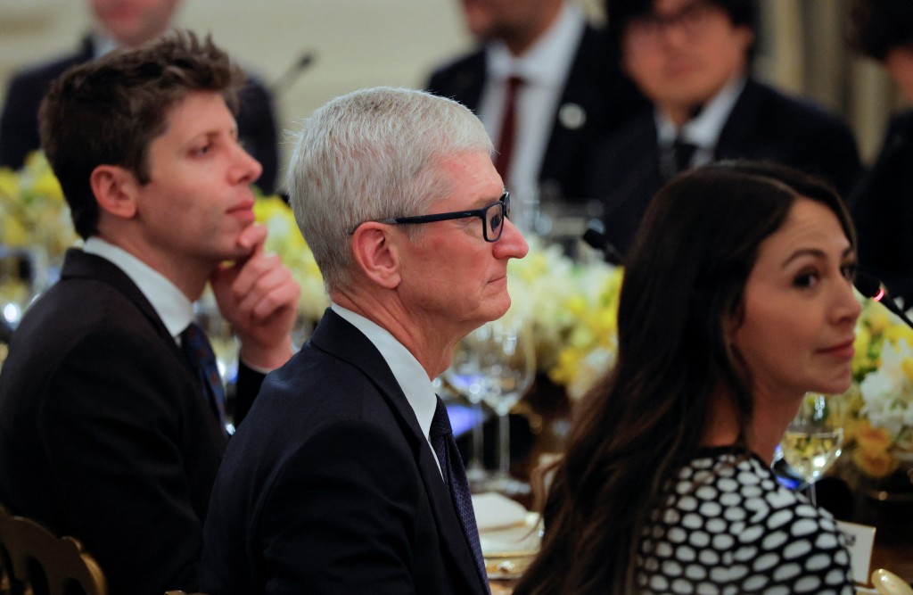 ▲特朗普点名苹果行政总裁库克(中)的情况很好。路透社