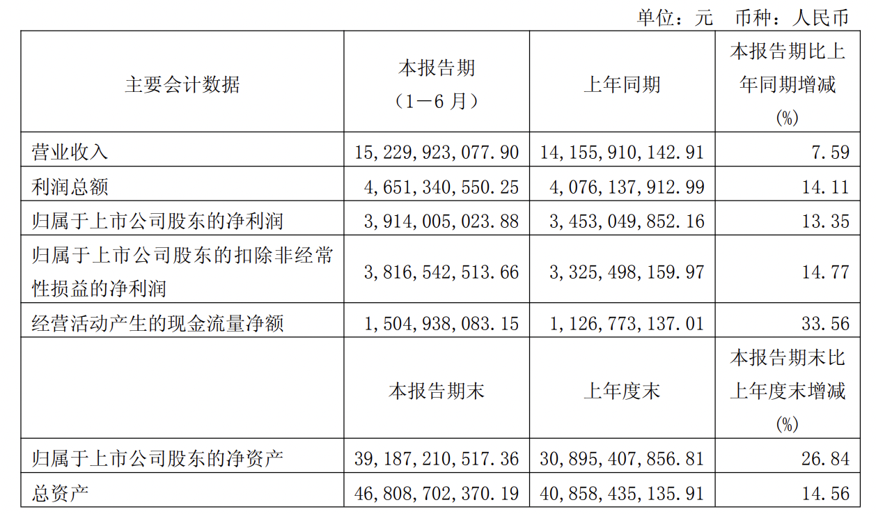 报告期内,海天味业营业收入为152.3亿元,同比上升7.6%;归母净利润为39.1亿元,同比上升13.3%;扣非归母净利润为38.2亿元,同比上升14.8%;经营现金流净额为15.05亿元,同比增长33.6%。