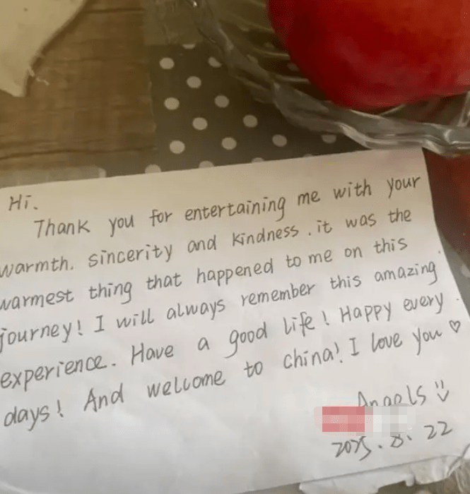 此外,让“芝欧粥”感觉温暖的还有人。她回忆,在乌兹别克斯坦,她穿街走巷迷了路,当地居民虽然不会英语,但看出了她的窘迫,连指带比画告诉她怎么走,小朋友还给她带路。还有一天在阿联酋,她没找到住的地方,被一位巴基斯坦大叔暖心收留。离开的时候为感谢大叔,她还手写了一封感谢信。
