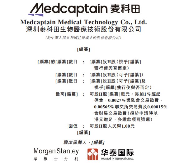 智通财经APP获悉,据港交所9月11日披露,深圳麦科田生物医疗技术股份有限公司(麦科田)向港交所主板提交上市申请书,摩根士丹利和华泰国际为其联席保荐人。据招股书,麦科田是一家全球医疗解决方案提供商,今年上半年亏损约4096.8万元人民币。