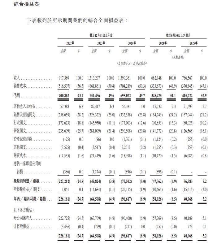 财务方面,于2022年度、2023年度、2024年度、2025年截至6月30日止六个月,麦科田收入分别约为人民币9.17亿元、13.13亿元、13.99亿元、7.87亿元;同期,该公司年内/期内亏损分别约为22616.1万元、6450.8万元、9661.7万元、4096.8万元。