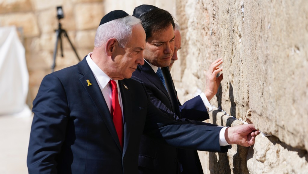 美国国务卿鲁比奥(Marco Rubio)到访以色列,在以色列总理内塔尼亚胡(Benjamin Netanyahu)1陪同下,在耶路撒冷西墙(Western Wall)一同祈祷。内塔尼亚胡形容美以同盟“坚固如同哭墙石块”,并称在特朗普与鲁比奥任内,美以关系“前所未有地强大”。