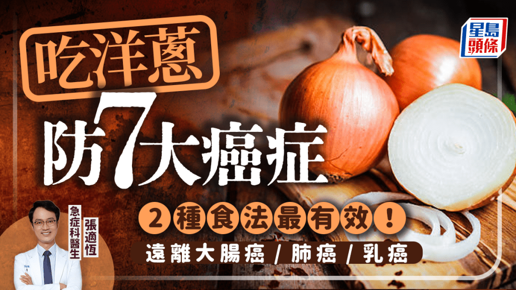急症科医生张适恒在其YouTube频道推介吃洋葱防癌作用,有效预防7大癌症,包括胃癌、头颈癌、食道癌、大肠癌、肺癌、前列腺癌与乳癌。