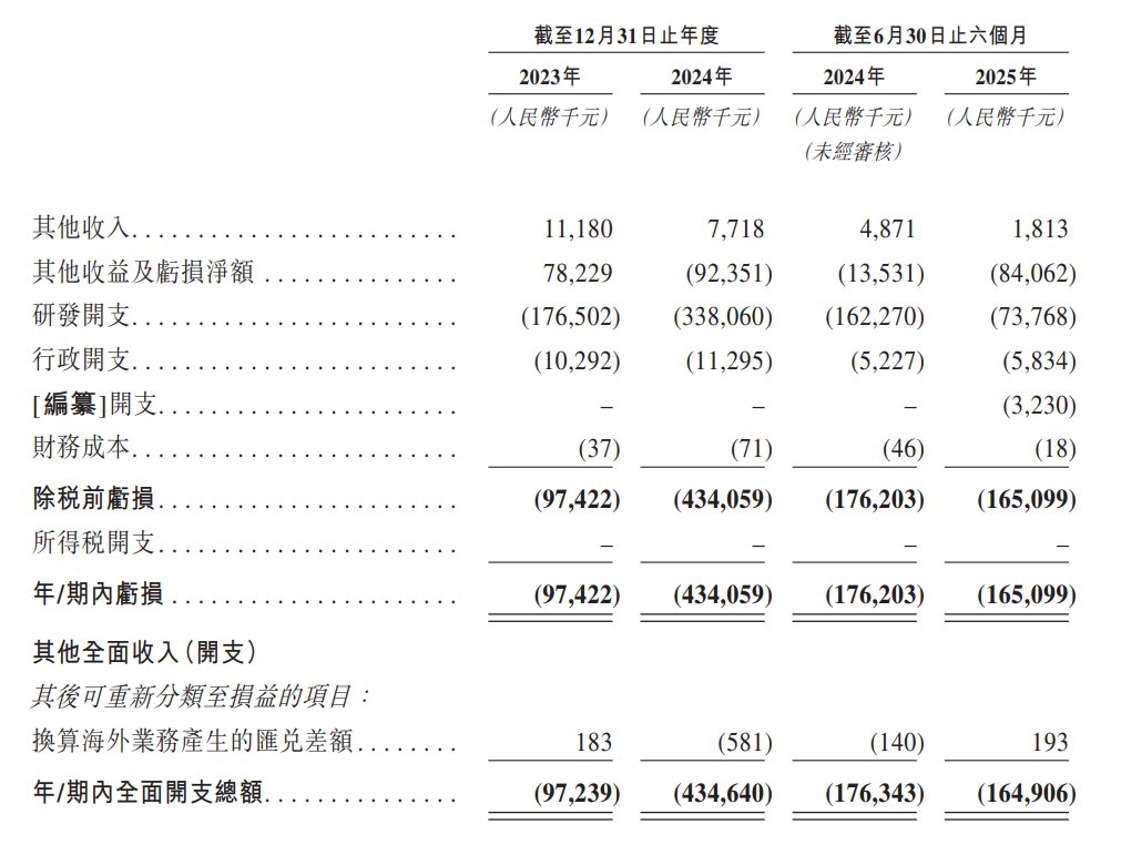 财务方面,公司目前并无产品获批进行商业销售,亦无从产品销售中产生任何收益。公司于往绩记录期间录得经营亏损。公司于2023年、2024年及截至2025年6月30日止六个月的年度/期间亏损分别约为人民币9742.2万元、人民币4.34亿元及人民币1.65亿元。公司的亏损主要来自研发开支及行政开支。