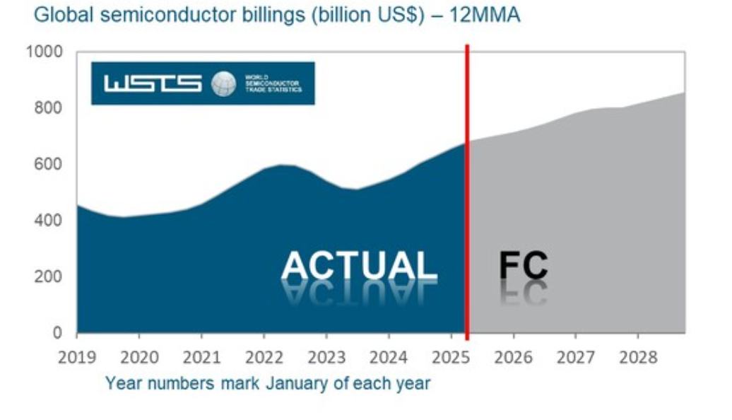 世界半导体贸易统计组织(WSTS)近期公布的最新半导体行业展望数据显示,全球芯片需求复苏有望在2025年至2026年继续上演,并且自2022年末期以来需求持续疲软的模拟芯片有望不久后踏入强劲复苏曲线。