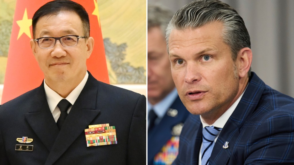 ▲国防部长董军9日晚应约同美国国防部长赫格塞思视频通话。 中新社/美联社