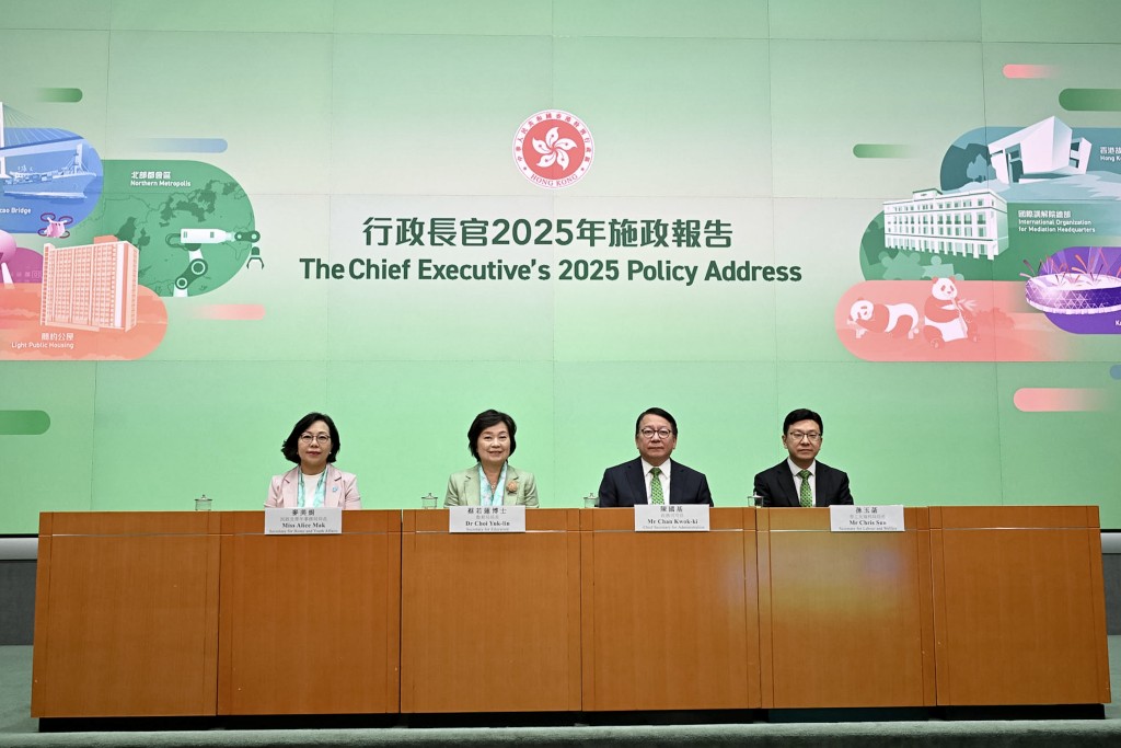 ▲陈国基及孙玉菡就《行政长官2025年施政报告》相关措施见记者。 刘骏轩摄