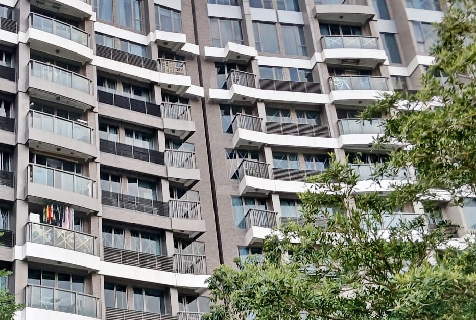 ▲沿海滨长廊而建的海景豪宅,居民也都提升 防风战力,不少单位早已贴上交叉形或米字形的胶纸防风。