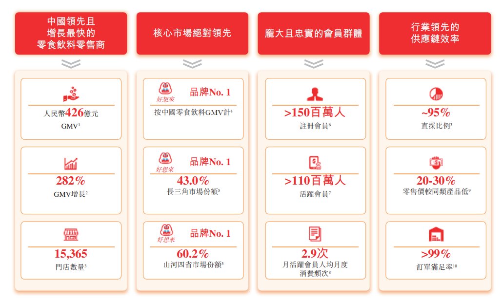 招股书披露,根据灼识咨询的资料,万辰集团是中国领先且增长最快的规模零食饮料零售企业,2023年至2024年GMV同比增长282%。根据同一资料来源,公司的全国性品牌好想来在2024年以零食饮料的GMV计位列中国零食饮料零售品牌榜首,同时也是全国首个门店数量突破10,000家的量贩零食饮料零售品牌。
