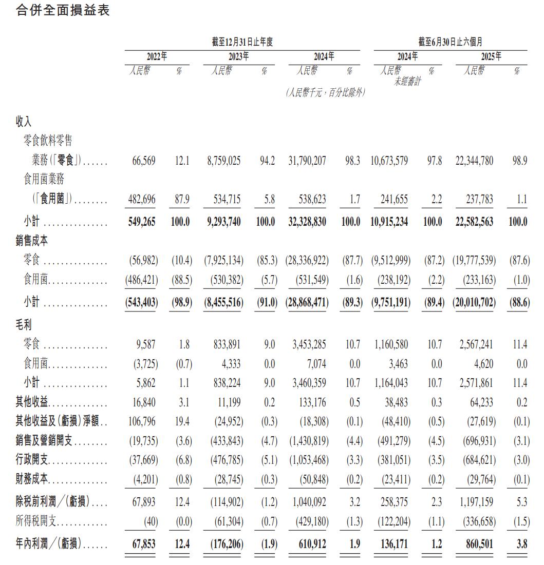 财务方面,于2022年度、2023年度、2024年及2025年截至6月30日止六个月,公司实现收入分别约为5.49亿元、92.94亿元、323.29亿元、225.83亿元人民币;同期,年/期内利润分别约为6785.3万元、-1.76亿元、6.11亿元、8.61亿元人民币。