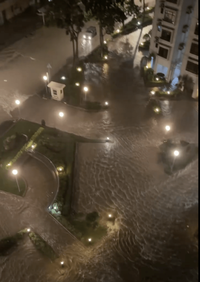 鲤鱼门篮球场被水淹浸 水深至小腿