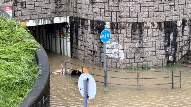 杏花邨及城门河海水倒灌 大埔行人隧道遭淹浸