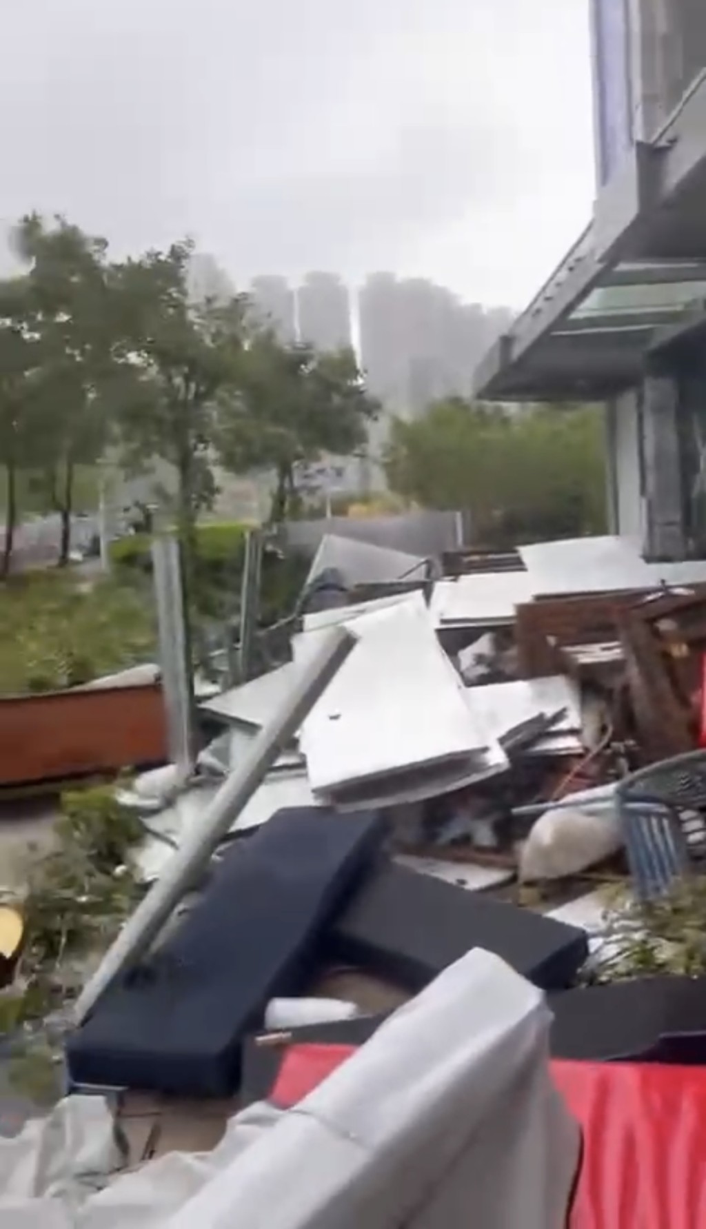 另外,海滨长廊行人道旁一列餐厅商户更是损失惨重,有街坊向《星岛》报料,虽然已在风暴来袭前,架上挡板,但似乎作用不大,从相片中可见多间餐厅大门玻璃遭狂风击碎,内部桌椅翻倒,物品四处散乱,场面一片混乱。