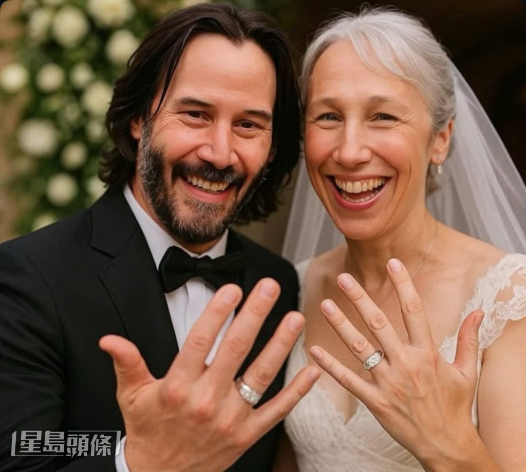 61岁好莱坞男神奇洛李维斯(Keanu Reeves)惊传秘婚! 最近网上疯传奇洛于今年夏天与艺术家女友Alexandra Grant在欧洲度假时,于当地举行了一场低调的私人婚礼,更疑似流出二人的结婚照,相中他们穿上结婚礼服并齐齐大晒婚戒。 不过奇洛的发言人就对E! News否认婚讯,“不是真的,他们没有结婚。”