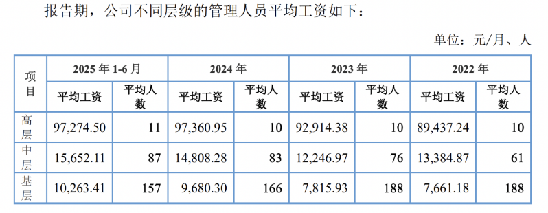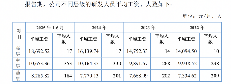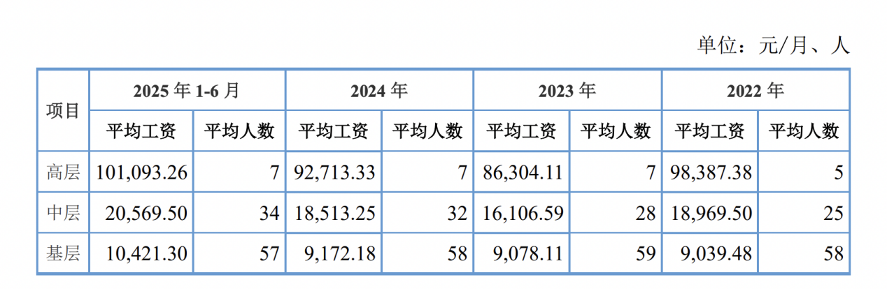 据上述披露,2025年上半年,红板科技高层销售人员、高层管理人员、高层研发人员月平均工资分别为10.11万元、9.73万元、1.87万元。