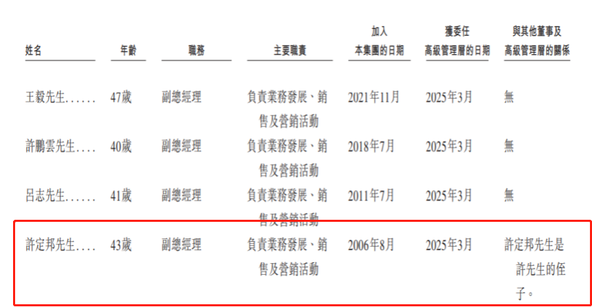 许定邦为董事长许开华侄子,43岁,于2004年6月自华中师范大学获得英语专业学士学位。为格林美的副总经理。