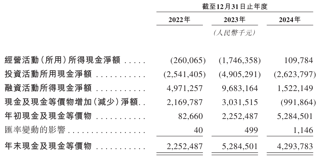 不仅如此,除了2024年实现1.10亿元的经营活动现金流入外,海辰储能报告期内的投资、经营净现金流持续为负,自我造血能力不足;2024年,该公司全年现金及现金等价物净流出9.92亿元。
