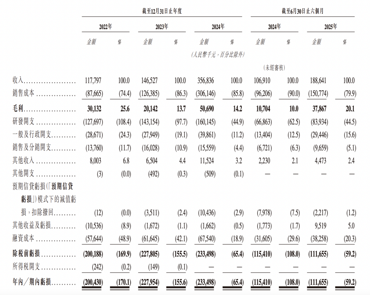 2025年上半年,魔视智能收入为1.89亿元,同比增长76.45%;期内亏损1.12亿元,上年同期亏损1.15亿元;毛利率为20.1%,上年同期为10%。