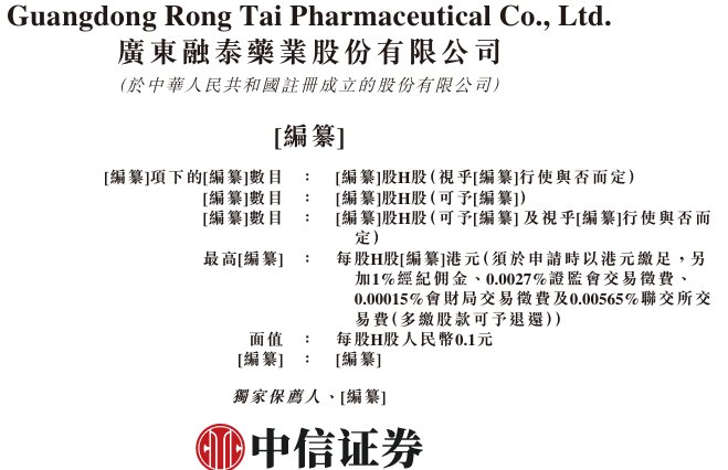 据港交所9月26日披露,广东融泰药业股份有限公司(简称:融泰药业)向港交所主板提交上市申请书,中信证券为独家保荐人。