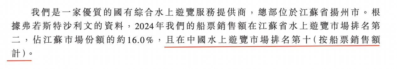 根据弗若斯特沙利文数据,于2024年,瘦西湖在江苏省水上游览服务市场的船票销售额方面排名第二,约占江苏省市场份额的16.0%,且在中国水上游览市场排名第十(按船票销售额计)。