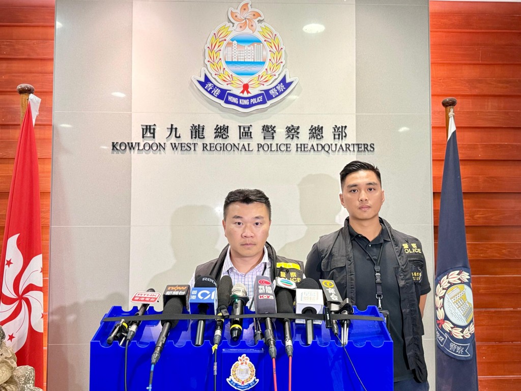 ▲西九龙总区刑事总部(行动)警司贾锦琳(中)及重案组第4B队高级督察吴彦(右)交代案情。