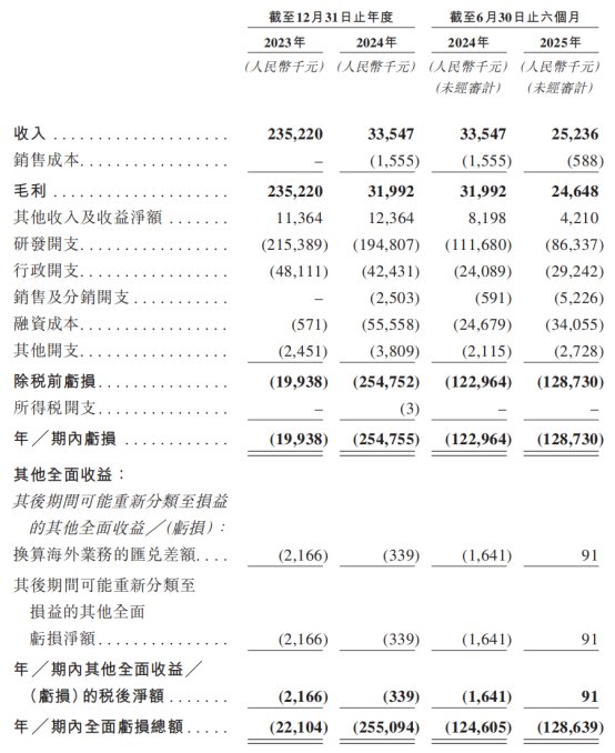 从财务数据来看,尽管英派药业通过对外授权及药品销售获得部分收入,公司在2023年、2024年全年及2025年上半年仍分别录得约1.99亿元、2.55亿元和1.29亿元的亏损,主要源于高强度的研发支出。截至2025年6月30日,公司现金及现金等价物仅余2.1亿元,现金流状况趋于紧张。