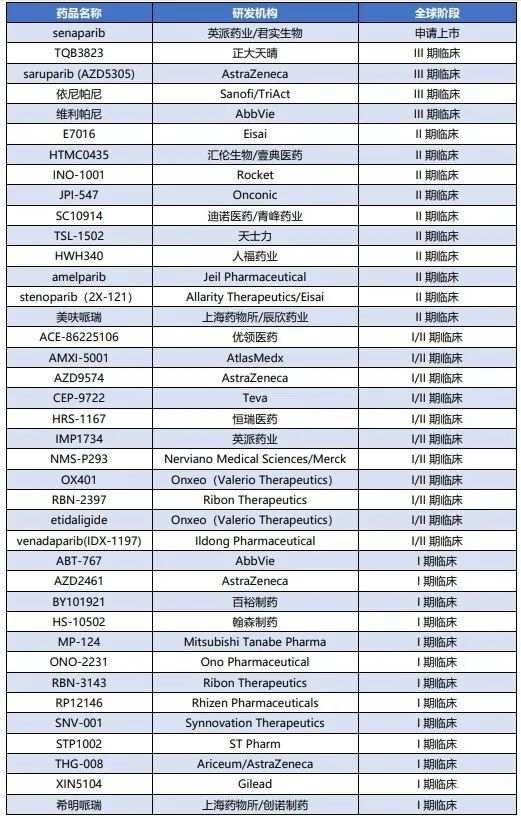 (图:PARP抑制剂全球临床在研管线,来源:医药魔方)