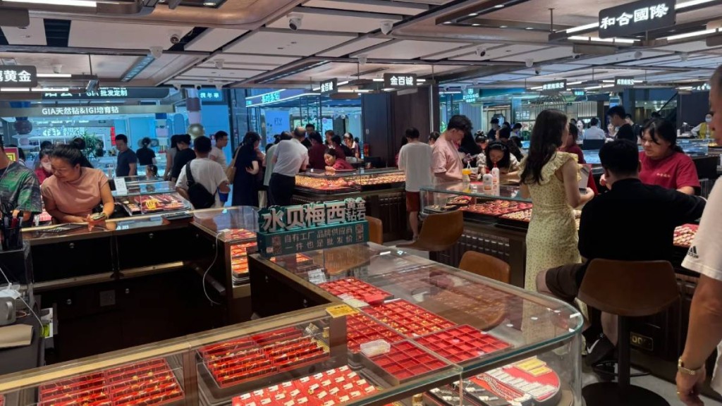 作为内地黄金珠宝产业的重要集散地,位于深圳罗湖的水贝黄金珠宝市场,国庆中秋双节迎来一轮消费热潮。 除了因为金价持续攀升外,今年底至明年初有不少婚嫁吉日,均带动了对黄金产品的需求,涉及婚庆的金铺生意最为畅旺。