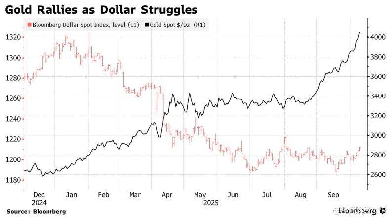 本周现货黄金首次突破每盎司4000美元关口,比特币亦于周末刷新历史新高。Eurizon策略师指出,这两类资产的同步上涨“显然受共同因素驱动”,即储备货币发行国“疯狂印钞”,推动资金寻找新的价值储藏手段。该机构预测,若各国央行的黄金持有量比例与美元储备持平,金价理论上有望攀升至8500美元。