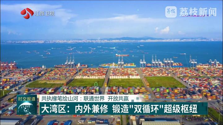 广东广州台记者黄晓嘉说:“我们将联动深圳、珠海两地媒体同行一起带大家感受大湾区的开放活力。此刻,我正站在粤港澳大湾区的地理几何中心——广州港南沙港区的码头。外贸箱量16年来首次反超内贸箱量,是今年这座大港的一件里程碑事件。‘经略腹地’与‘面向海洋’协同发力,真是妥妥的‘双循环’高手、大湾区超级接口,这身‘内外兼修’的功夫到底是如何练就的呢?”