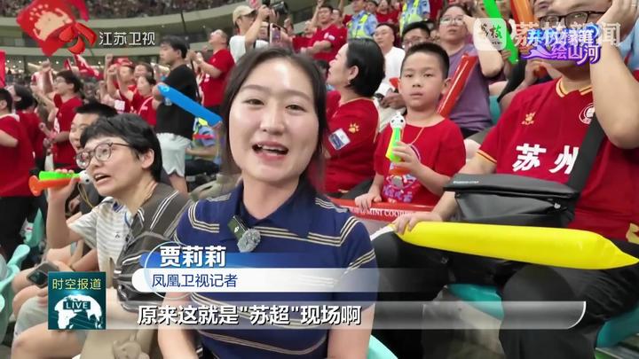 凤凰卫视记者贾莉莉说:“我终于抢到‘苏超’的门票了!‘苏超’现场太激动人心了,专业级的赛场坐满了球迷,加油声、助威声震耳欲聋。好钟意江苏,这里好棒、好靓啊!”