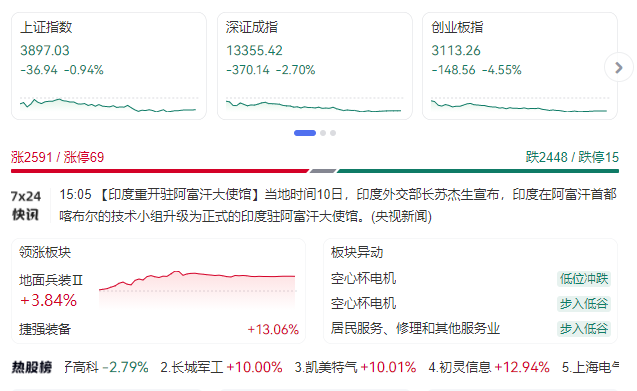 10月10日消息,三大股指集体收跌,创指收跌超4%,深成指跌近3%,科创50跌5.61%。截至收盘,沪指报3897.03点,跌0.94%;深成指报13355.42点,跌2.70%;创指报3113.26点,跌4.55%。