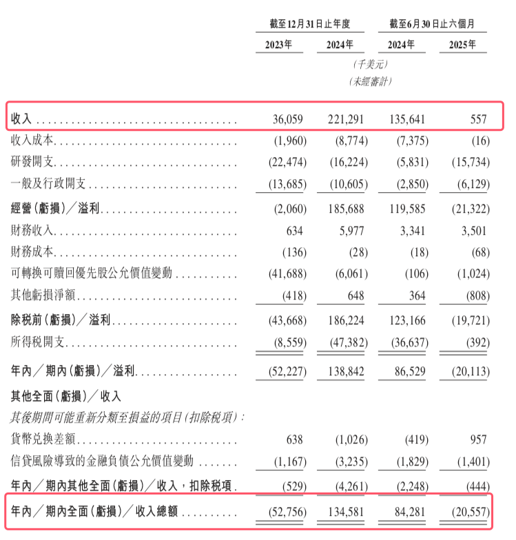 业绩方面,于2023年度、2024年度以及2025年1-6月,诚益生物收入分别约为3605.9万美元、2.21亿美元以及55.7万美元;同期,年内/期内利润分别约为-5222.7万美元、1.39亿美元以及-2011.3万美元。业绩波动较大。