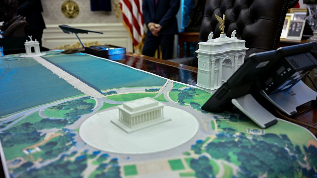 美国总统特朗普日前在白宫会见芬兰总理,期间记者发现椭圆形办公室的办公桌上,放了一座法国凯旋门式建筑的规划模型。这座建筑将比隔波托马克河相望的林肯纪念堂还要宏伟,相信与美国明年庆祝独立250周年有关。
