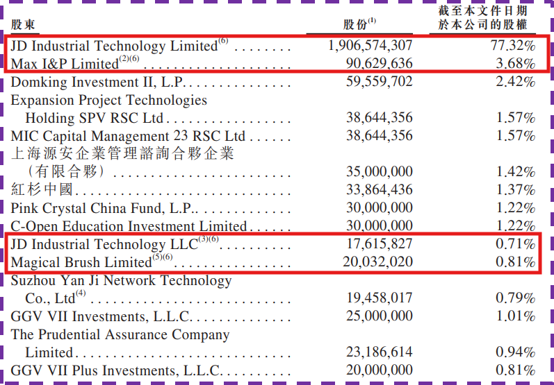 截至申请日,京东工业总股本为24.66亿股。京东集团通过3家公司间接持有京东工业19.44亿股,占总股本的78.84%;刘强东还单独通过Max I&P Limited持有京东工业3.68%的股份,为其第二大股东。