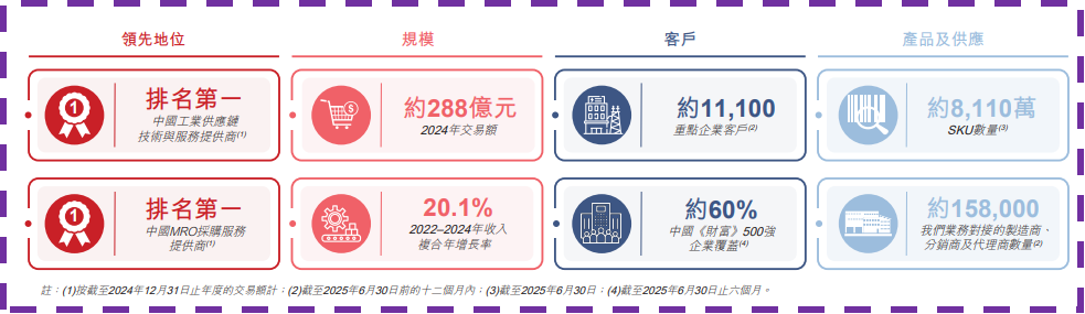 截至2025年6月30日前的12个月内,京东工业已为1.11万个重点企业客户提供定制采购系统服务;而在供应端,平台上共有15.8万家商家。截至2025年6月底,京东工业SKU数量达约8110万个,是中国最大的MRO交易平台。