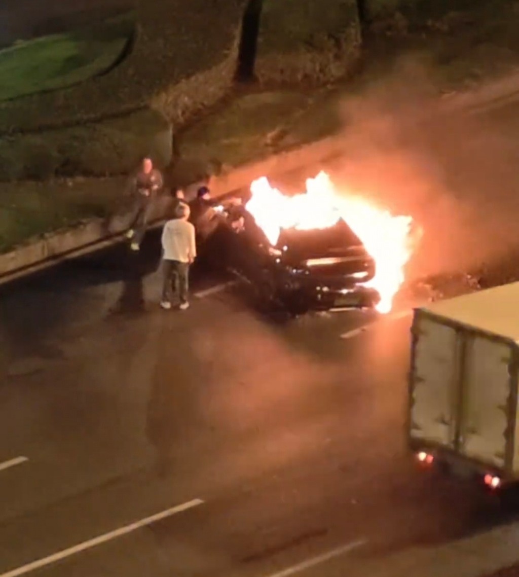 今日大约凌晨3时16分,该辆小米汽车路经天府大道疑超车后失控,撞绿化带翻滚至对向车道,随即爆燃。