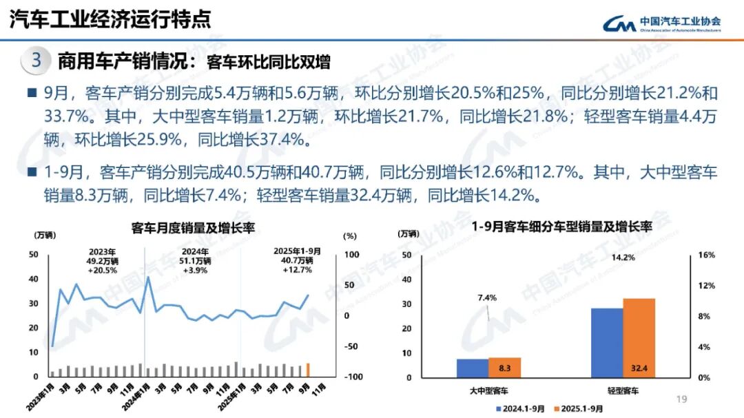 中汽协发布2025年9月汽车工业产销情况。9月,汽车产销分别完成327.6万辆和322.6万辆,环比分别增长16.4%和12.9%,同比分别增长17.1%和14.9%。汽车产销历史同期首次超过300万辆,月度同比增速已连续5个月保持10%以上。1-9月,汽车产销分别完成2433.3万辆和2436.3万辆,同比分别增长13.3%和12.9%,产销量增速较1-8月分别扩大0.6和0.3个百分点。