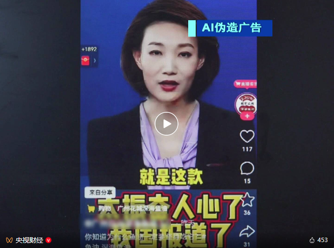 央视新闻主播竟然现身网络直播间?甚至还播报起深海鱼油的广告?近日,北京市市场监管部门查处了首例利用AI技术进行虚假广告宣传的案件。