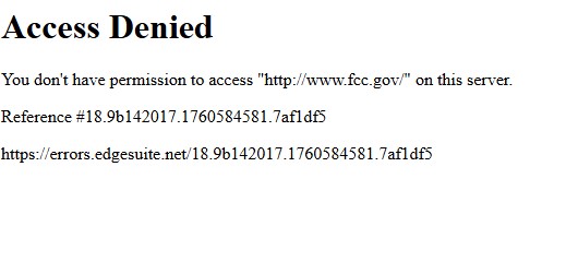 美国联邦通讯委员会(Federal Communications Commission,FCC)表示,基于国家安全考虑,将撤销香港电讯(06823.HK)旗下HKT International在美国的营运授权。《星岛》记者今早进入FCC官网,但显示“Access Denied(访问被拒)”无法进入,未知原因。记者就此事向香港电讯查询,暂时未获回复。相关阅读:5间中资运营商已遭FCC撤销营运授权,中国移动2019年率先被撤