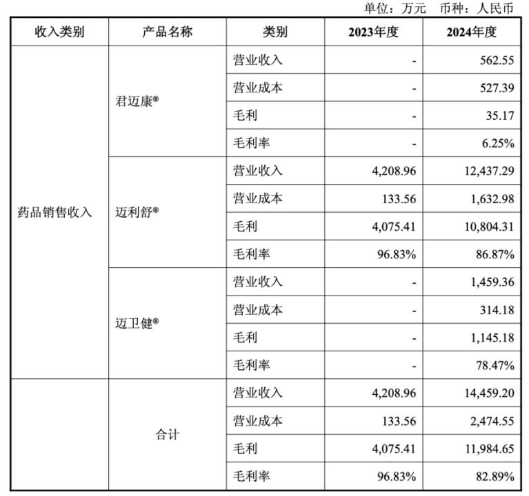 而销售药品方面,有媒体报道,2023年5月19日,迈威生物工作人员曾在上证e互动平台提到,“预计君迈康2023年达成销售收入约2.5亿元,预计迈利舒2023年销售金额不低于1.8亿元。”