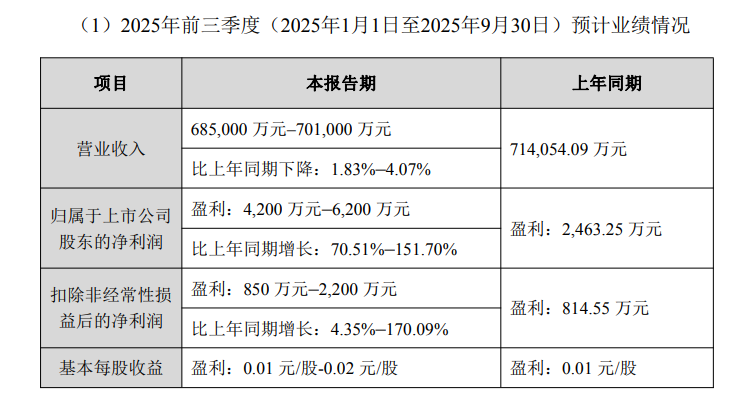 10月15日晚,美年健康(SZ002044)发布2025年前三季度业绩预告,预计前三季净利润同比增长70.51%–151.70%。