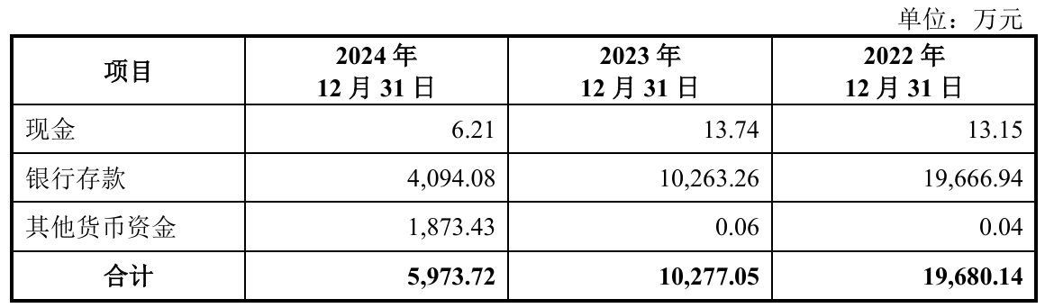 从现金角度看,引入外部投资者让钶锐锶获得了大额资金。2022年末,其货币资金达1.97亿元;2023年末,因自有生产基地建设支出,货币资金降至1.03亿元;而到2024年末,尽管公司引入新投资,但货币资金反而降至不足6000万元。