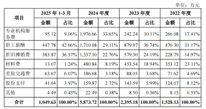 2024年,研发费用同比大增145.23%。其中,专业机构服务费中的验证费同比大幅增长11倍至1559.13万元;折旧摊销费同比增加757.8万元至1337.1万元。