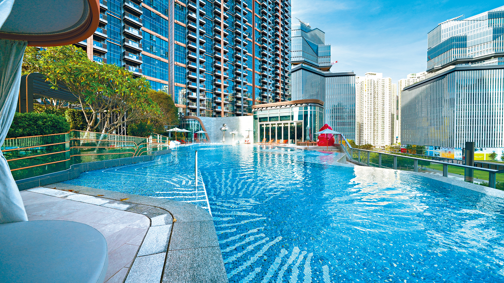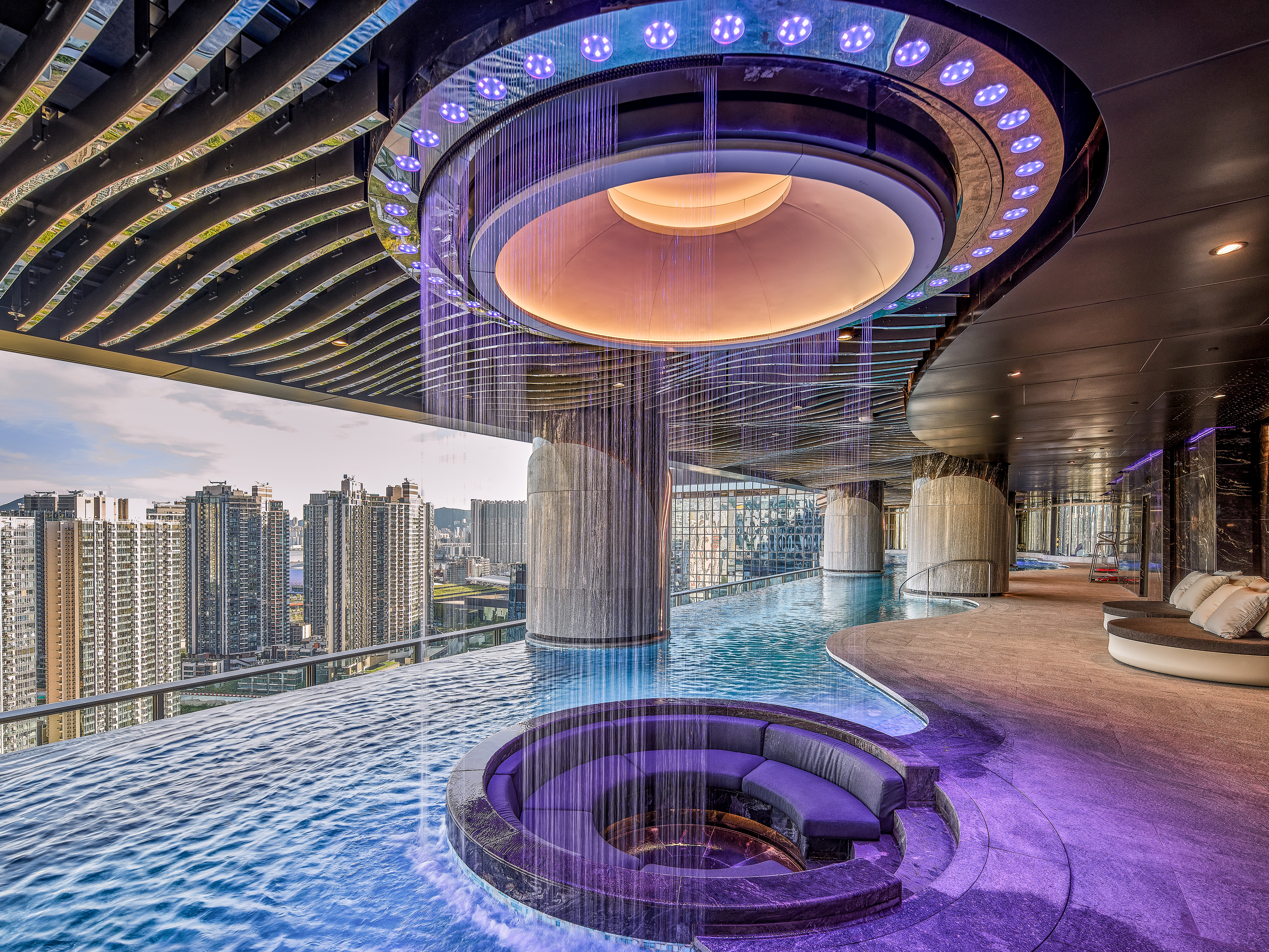 ▲31楼空中会所CLUB SKYWALK亦配备区内唯一的空中会所连50米无边际空中泳池,让住户能在泳池欣赏壮丽的维港景致。